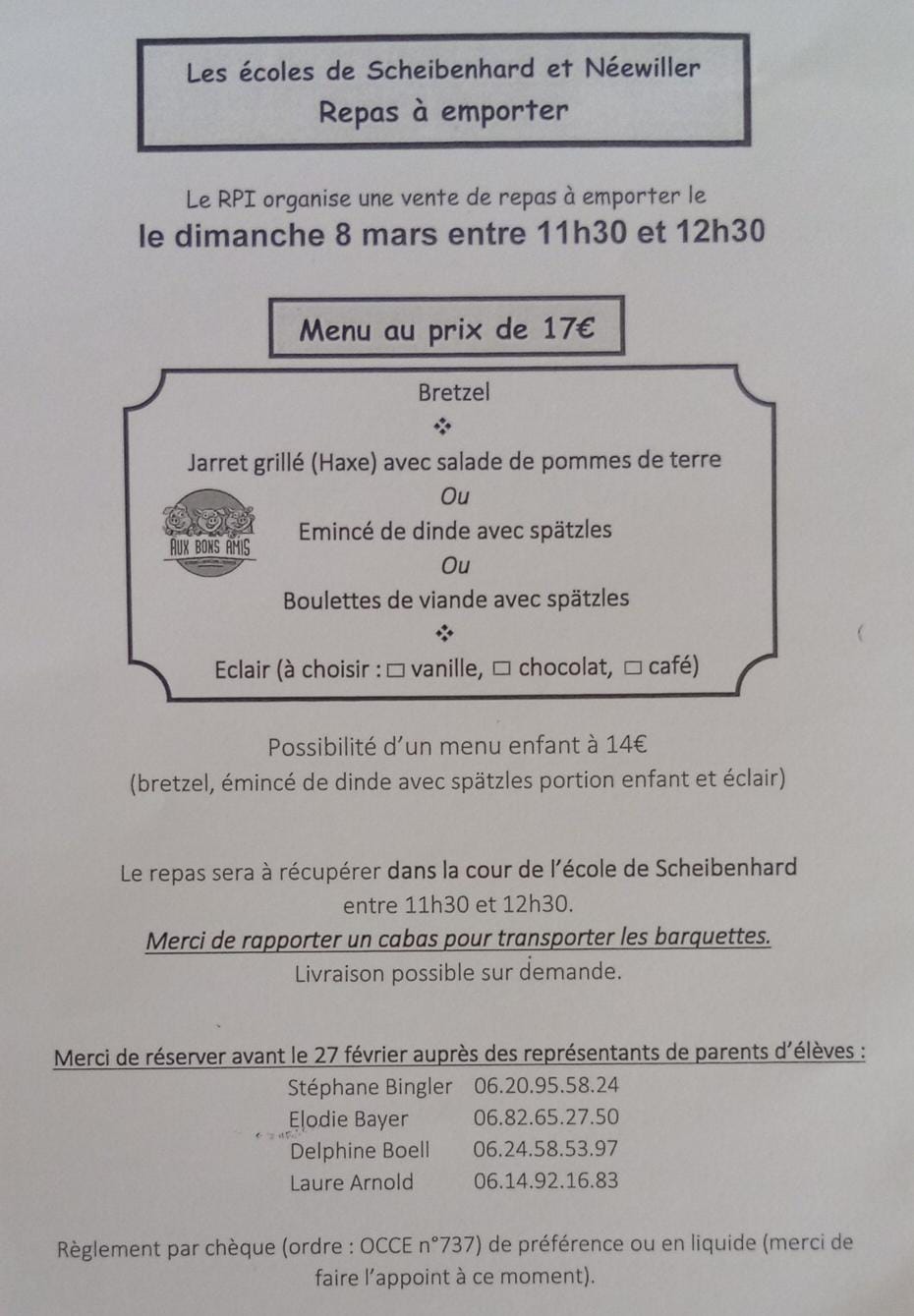 Le Football club de Scheibenhard vous propose un repas à emporter le 22.02.2026.
